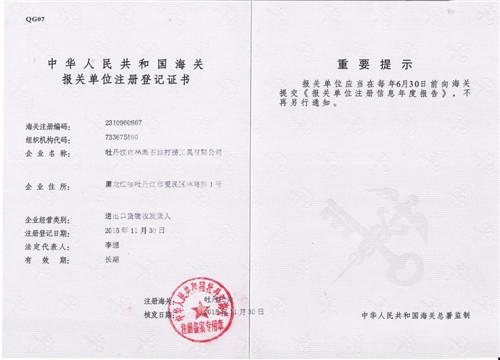 海關報關單位注冊登記證書